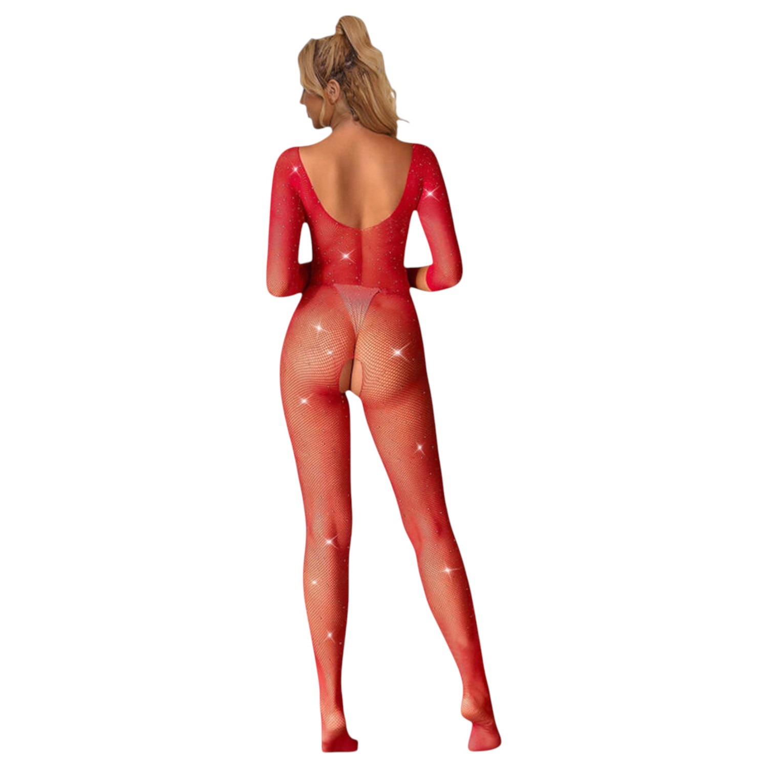 ¡Este body de manga larga con estampado de diamantes en rojo es el imprescindible para cualquier mujer sensual que quiera un look moderno y llamativo!