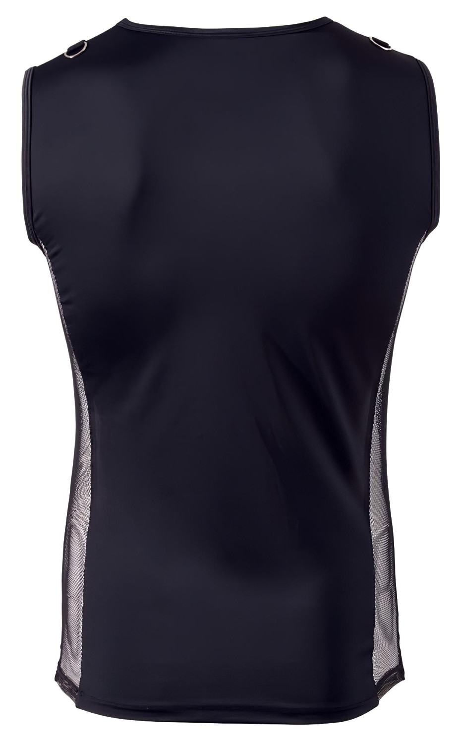Top masculino de tacto sedoso, con paneles de red en los laterales y un adorno exclusivo de cordones en el pecho.