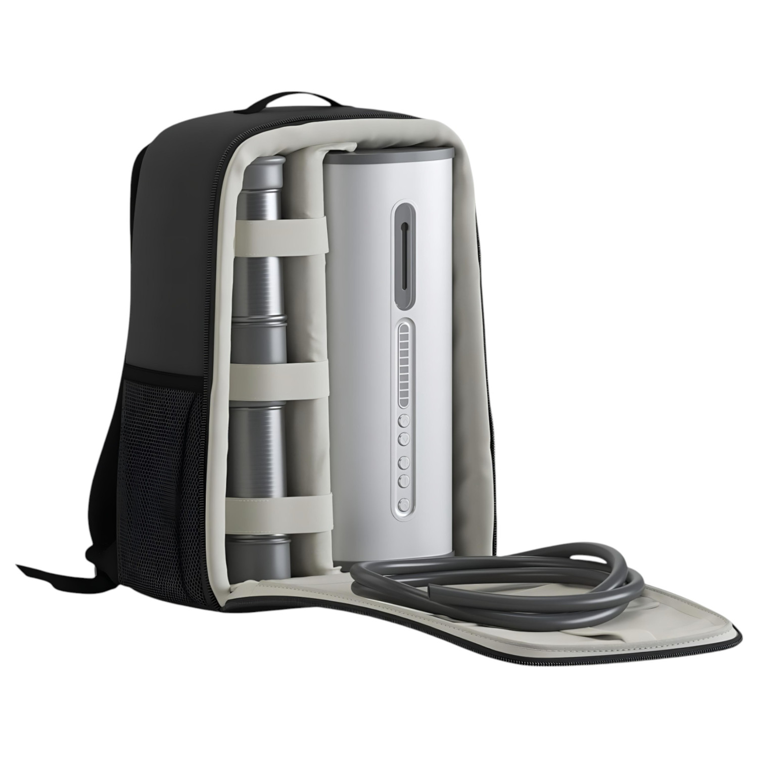 • La máquina y todos sus accesorios se empaquetan en una mochila de alta calidad para un almacenamiento discreto
