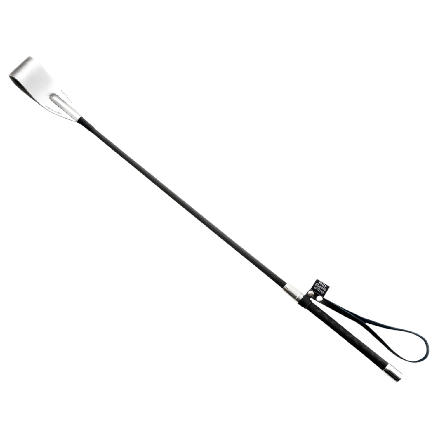 Palo de diseño exclusivo, hecho de cuero negro de alta calidad, con un mango resistente. ¡Para esos placeres intensos y dulces! El extremo está cubierto con un brillante y reluciente acabado plateado. Incluye una práctica correa para la muñeca para que no se te escape.¿Por qué mola?