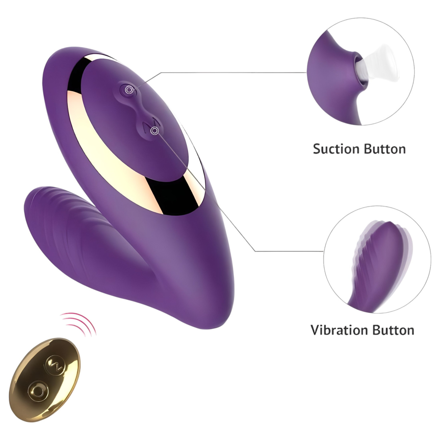Aplica lubricante y coloca el vibrador en la vagina, asegurándote de que la parte para el clítoris quede hacia arriba. Ajusta el cabezal de succión sobre el clítoris y elige la vibración o intensidad de succión que prefieras. Puedes usar ambas funciones a la vez, ya que tiene dos motores independientes.