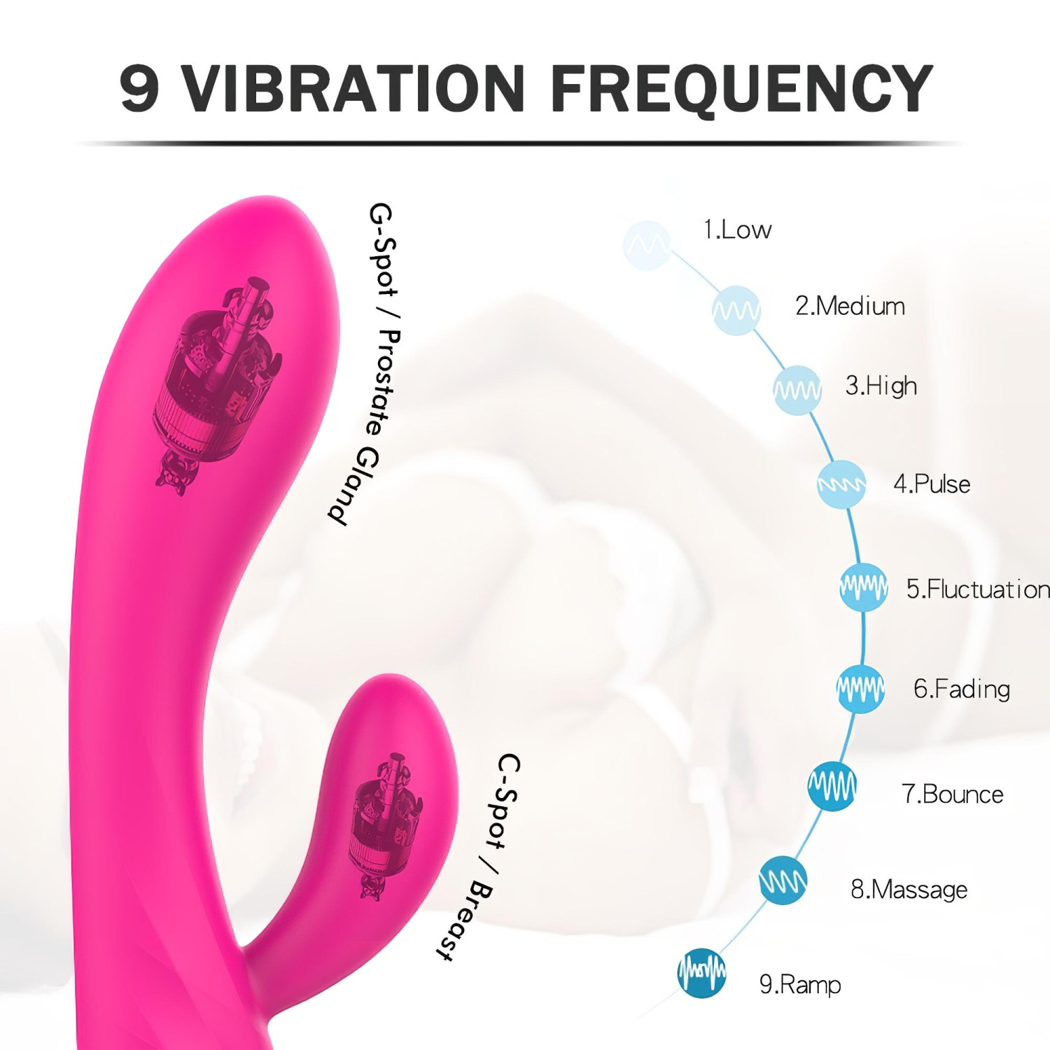 • Dos motores potentes de vibración: uno en la parte de penetración (para el punto G) y otro en el brazo del clítoris