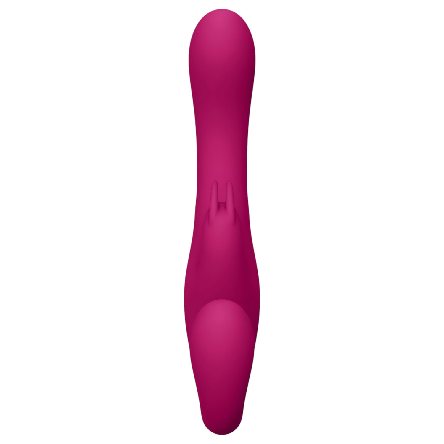 • Diseño súper original: vibrador para el punto G, conejito para el clítoris y función de arnés sin cinturón ¡todo en un solo juguete!