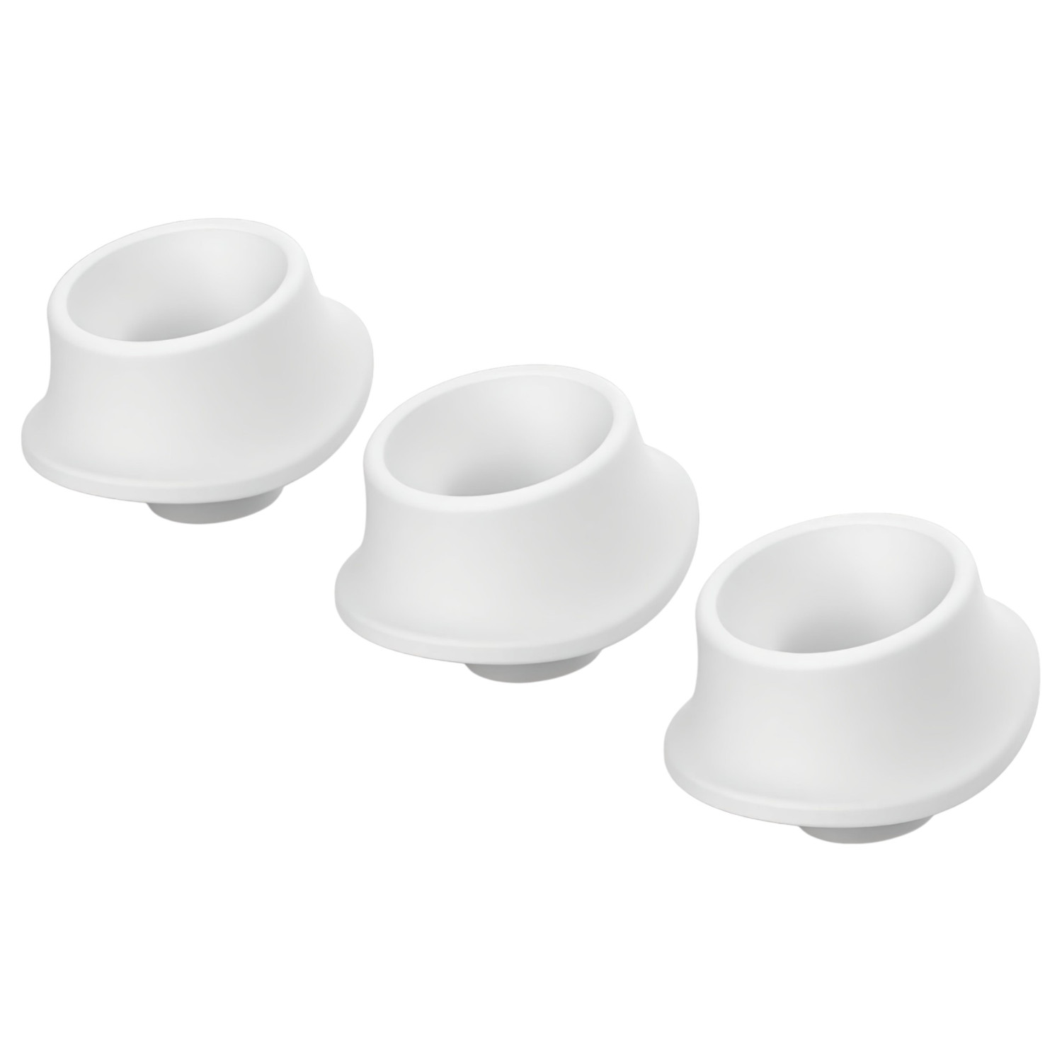 El conjunto de campanas de aspiración de repuesto para dispositivos Womanizer incluye tres campanas de succión blancas de gran tamaño (L), hechas de silicona de calidad médica con un revestimiento de PU.