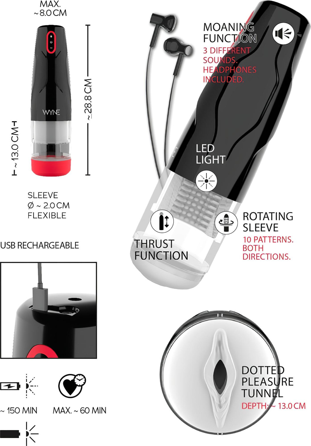 ¡Echa un vistazo al vídeo de presentación del WYNE 05 - masturbador giratorio con batería (negro-blanco)!