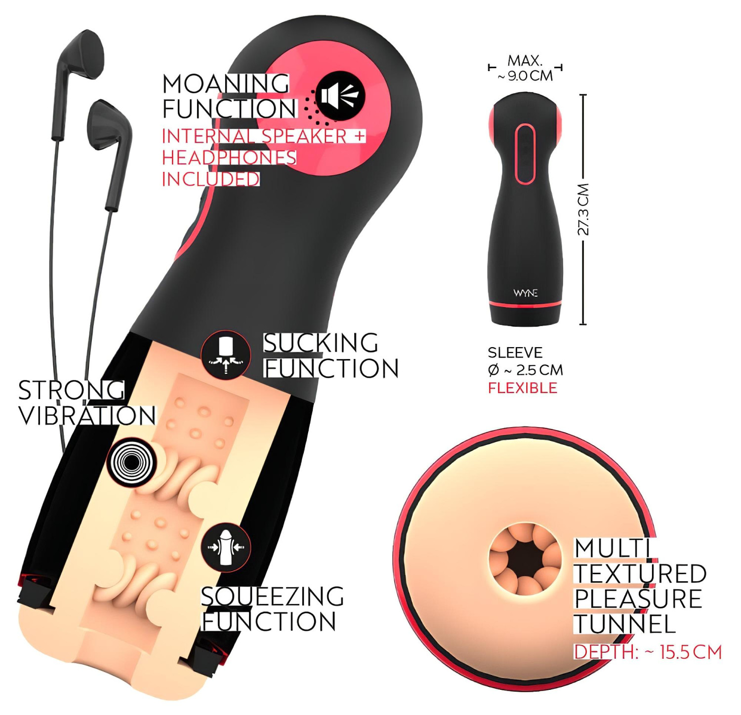 WYNE 06 - masturbador vibrador-suction, recargable (negro)