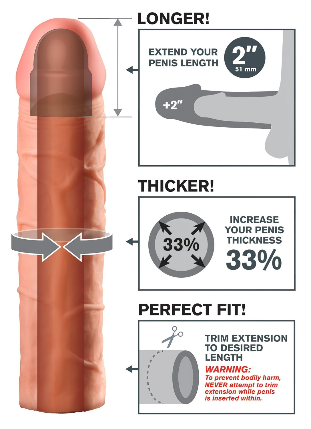 Funda para pene de material realista que agranda el tamaño sin dolor. ¡Hasta un 33% más de tamaño!