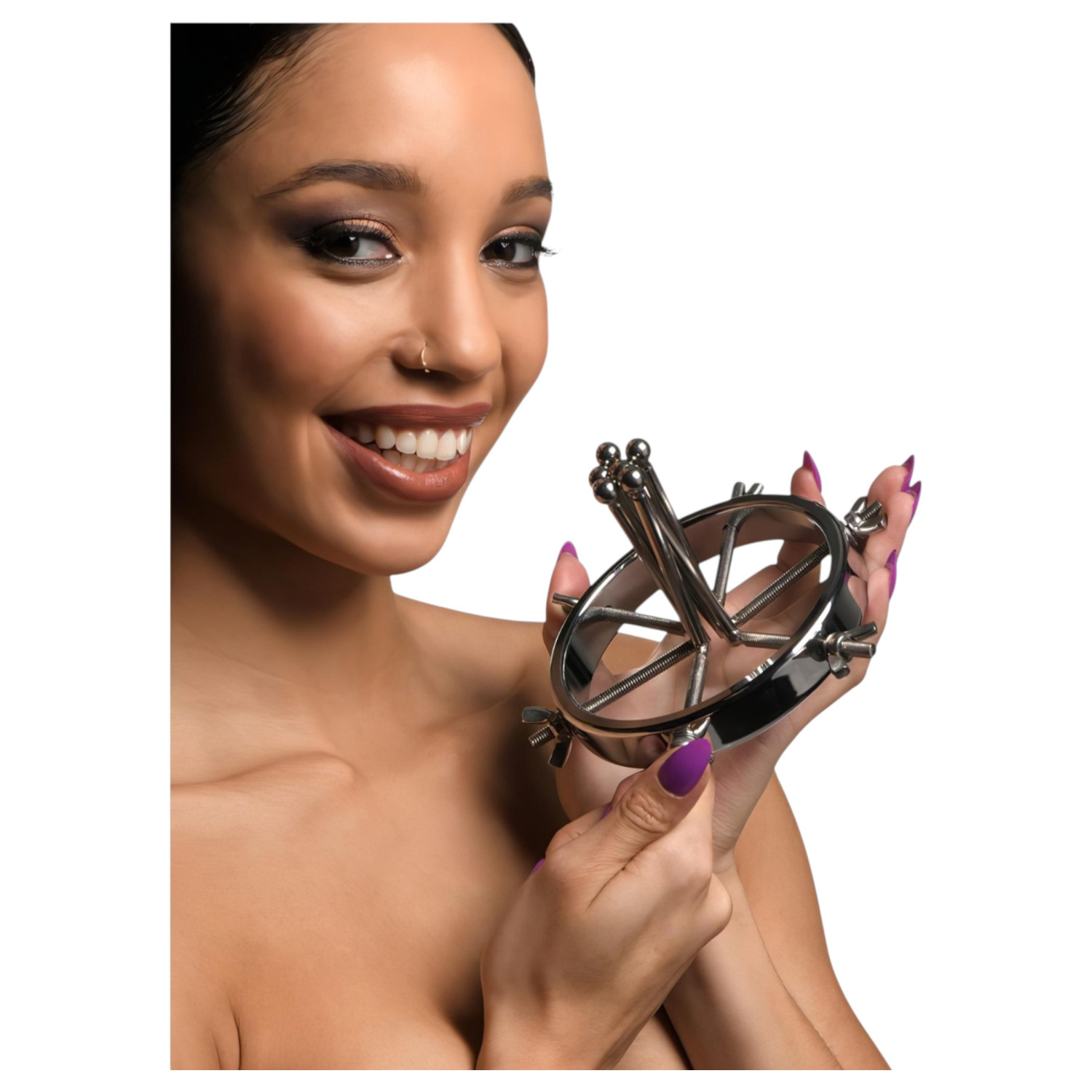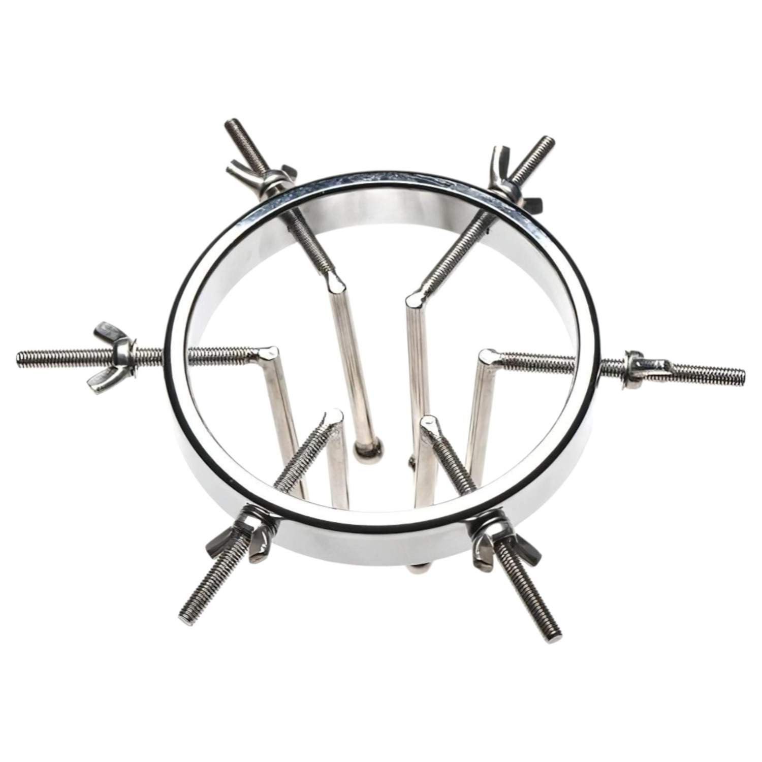 Este expansor anal premium está diseñado específicamente para usuarios experimentados que desean experimentar una expansión intensa y progresiva. Los 6 varillas lisas terminan en pequeñas esferas para garantizar una expansión cómoda y segura. El diámetro es ajustable desde 2,5 cm hasta 10 cm, lo que permite una experiencia avanzada hasta tamaños comparables al de un puño. Cada varilla se puede ajustar individualmente mediante tornillos de mariposa, permitiéndote personalizar completamente la expansión.