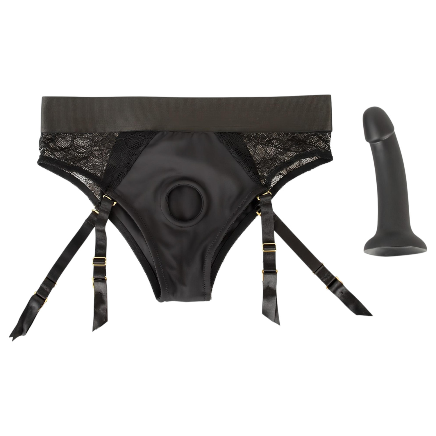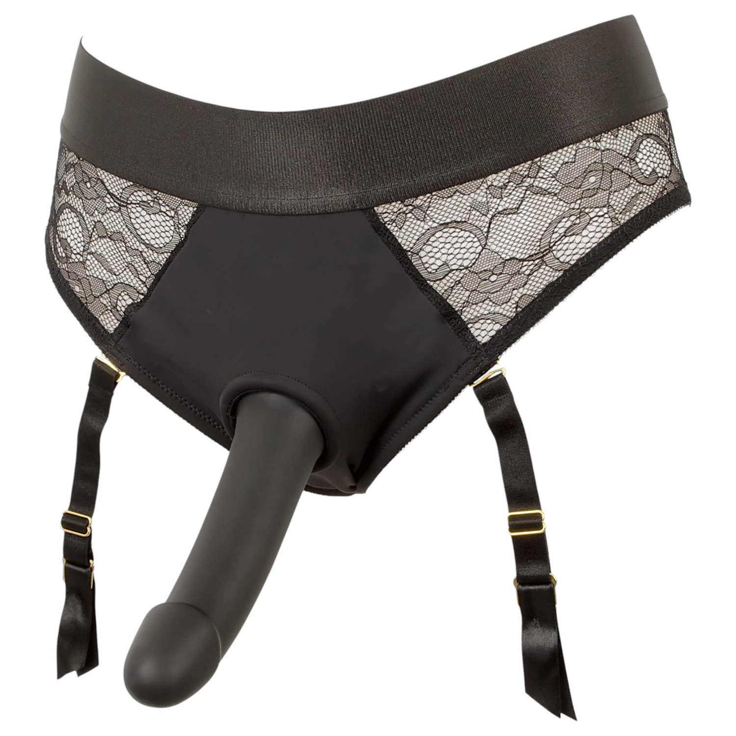 Este set es una elección ideal para quienes buscan juegos de rol excitantes o quieren probar el rol activo en el dormitorio. El arnés de encaje y microfibra es estético y cómodo, y además práctico: el dildo con ventosa se coloca fácilmente y permanece fijo incluso durante movimientos intensos. Los ligueros desmontables añaden más posibilidades y atractivo visual.