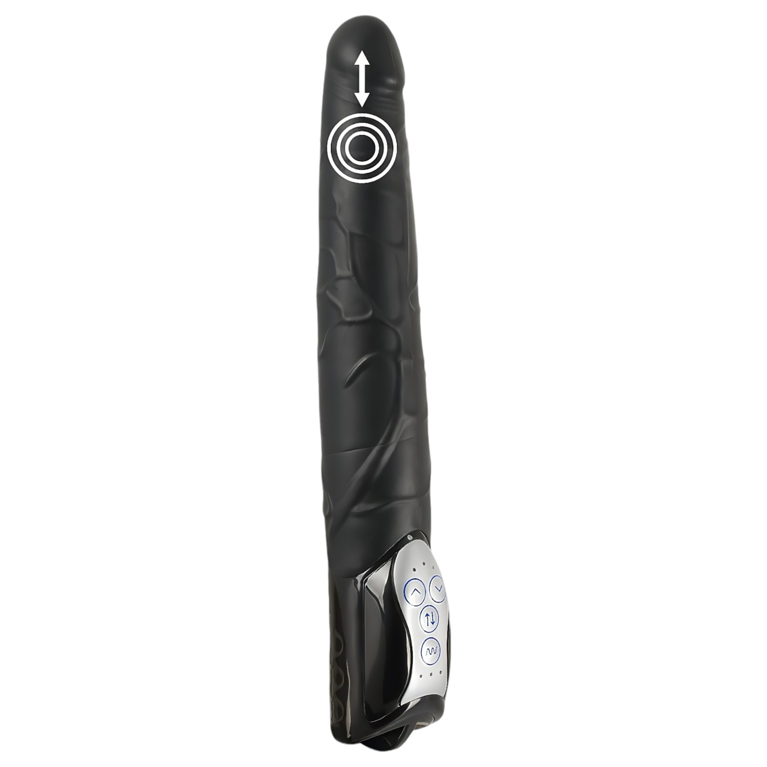 ¡Műpénisz de material flexible con una impresionante longitud, que te mima con función de empuje (arriba-abajo) en 3 velocidades y vibración!