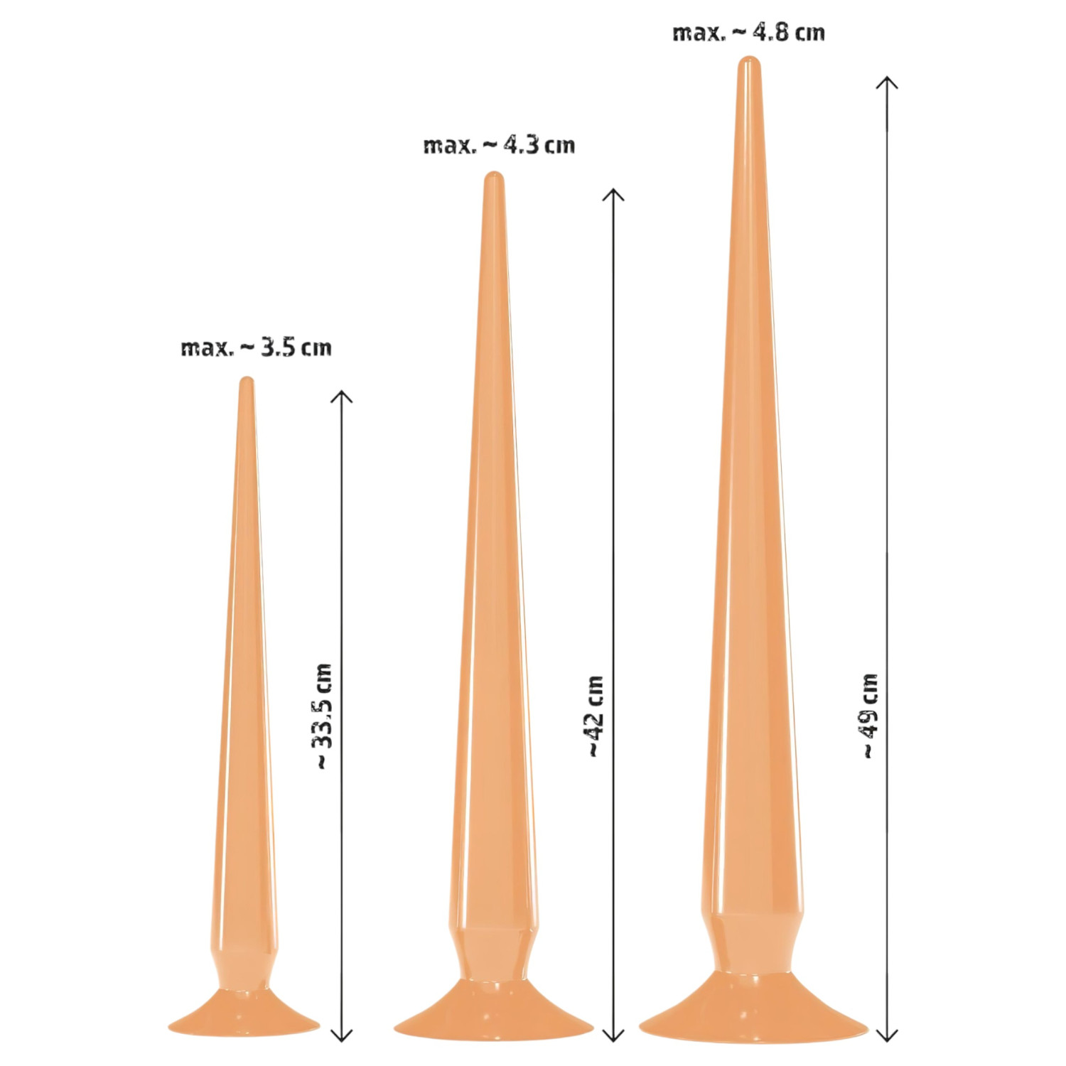 ¿Te animas con conos anales extralargos? ¡Aquí tienes no uno, sino tres dildos casi tan largos como una serpiente!