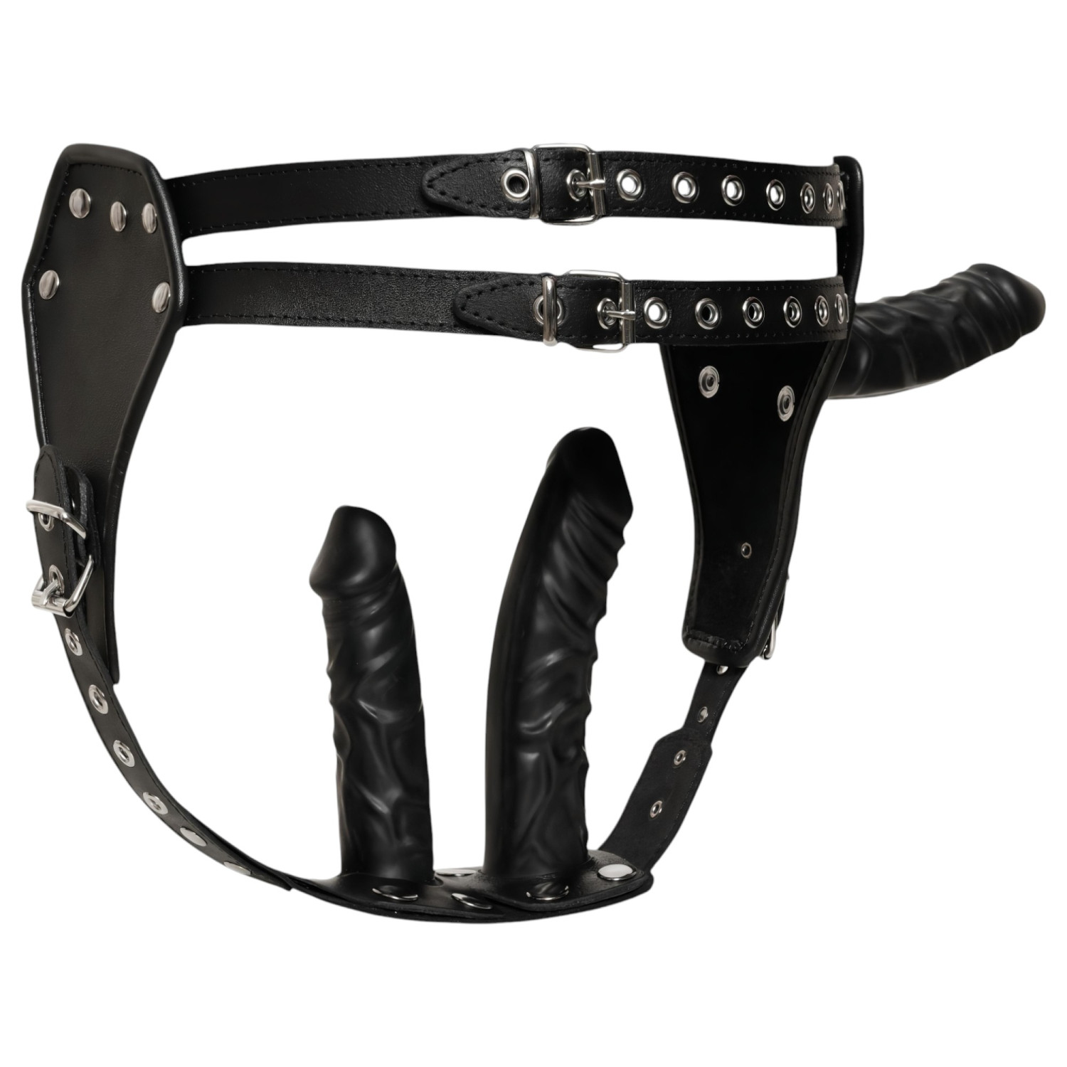 • Material: Metal, auténtica piel (parte inferior), 100% látex (dildos)