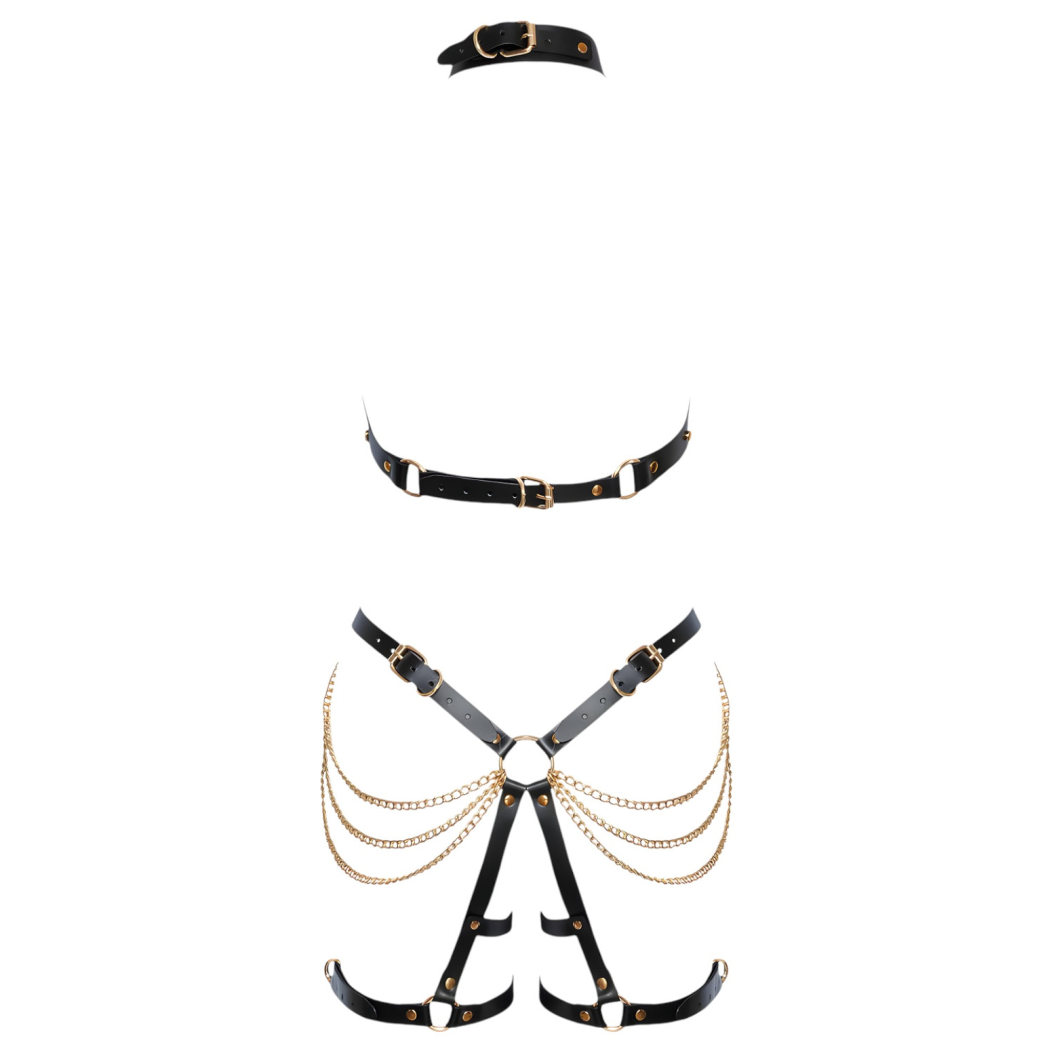 ZADO - Conjunto de arnés de cuero 2 piezas (negro-oro)