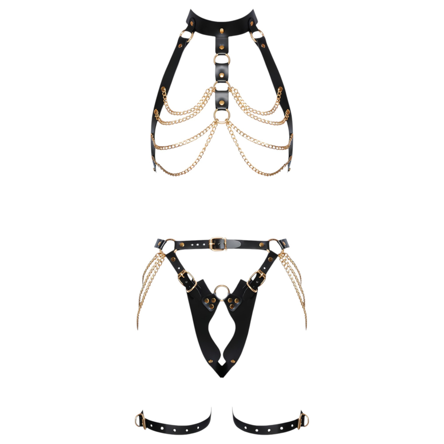 Reseñas ZADO - Conjunto de arnés de cuero 2 piezas (negro-oro)