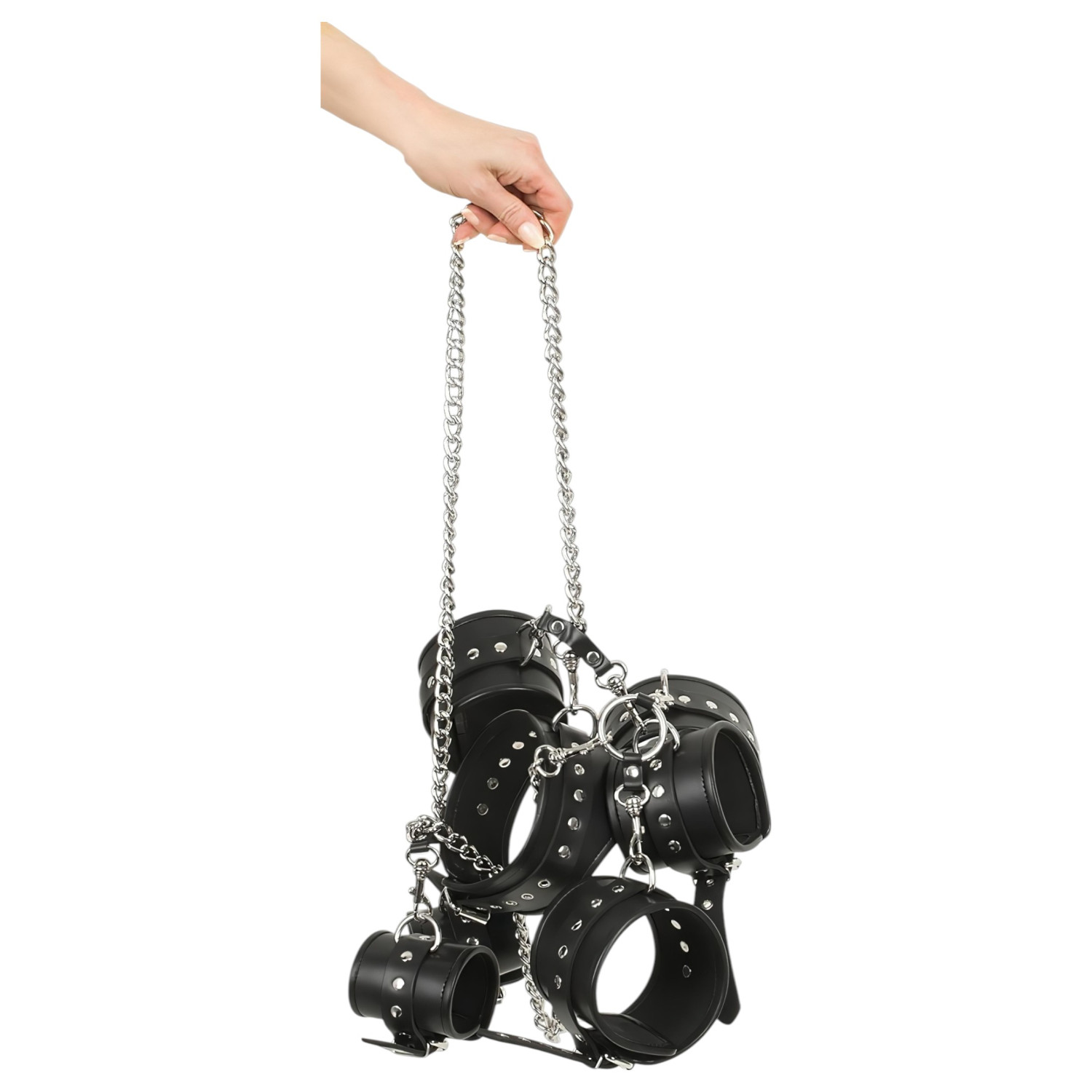 ¡Descubre una nueva dimensión del bondage con este set de esposas de alta calidad, hecho de cuero auténtico, diseñado especialmente para los jugadores de BDSM más avanzados!